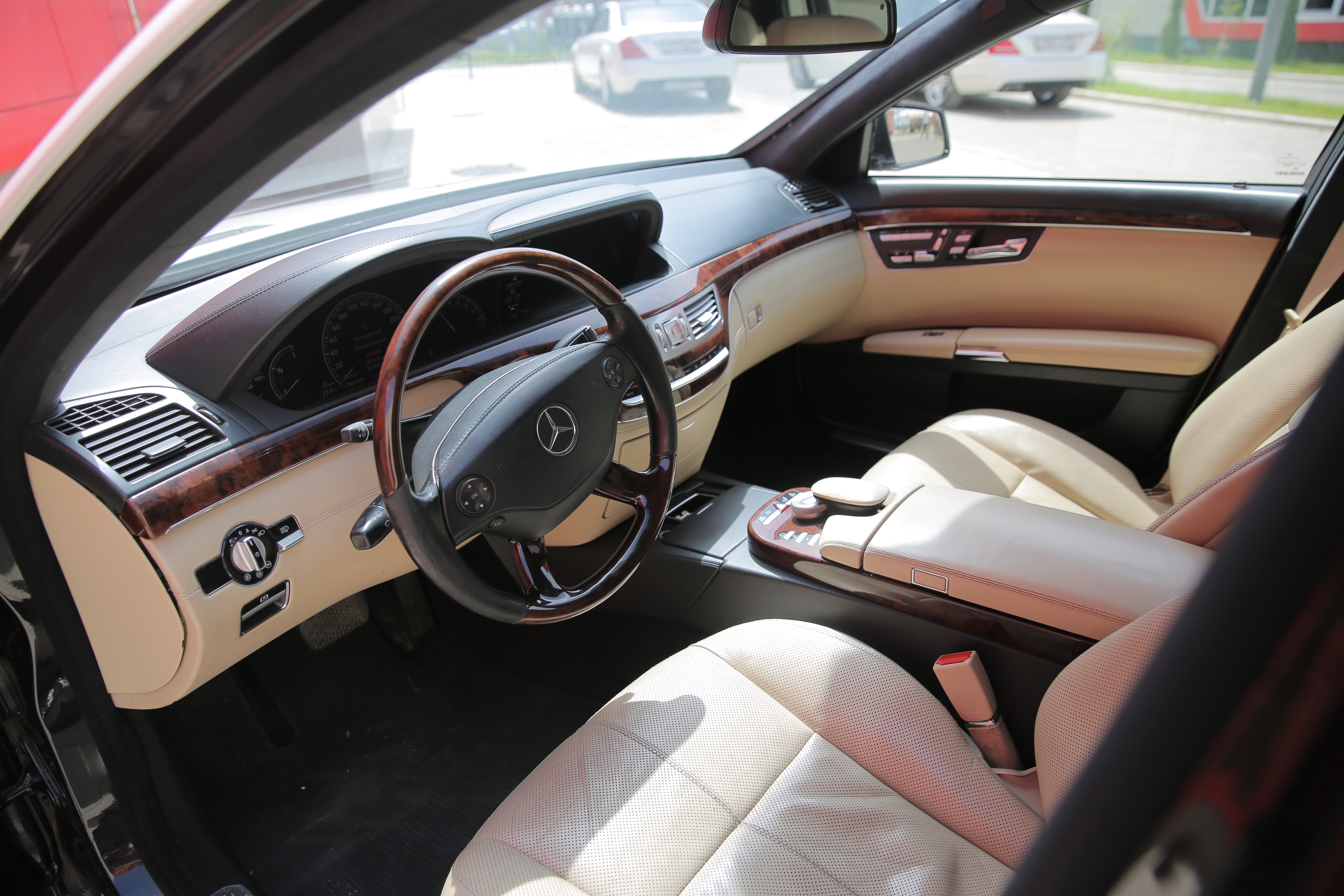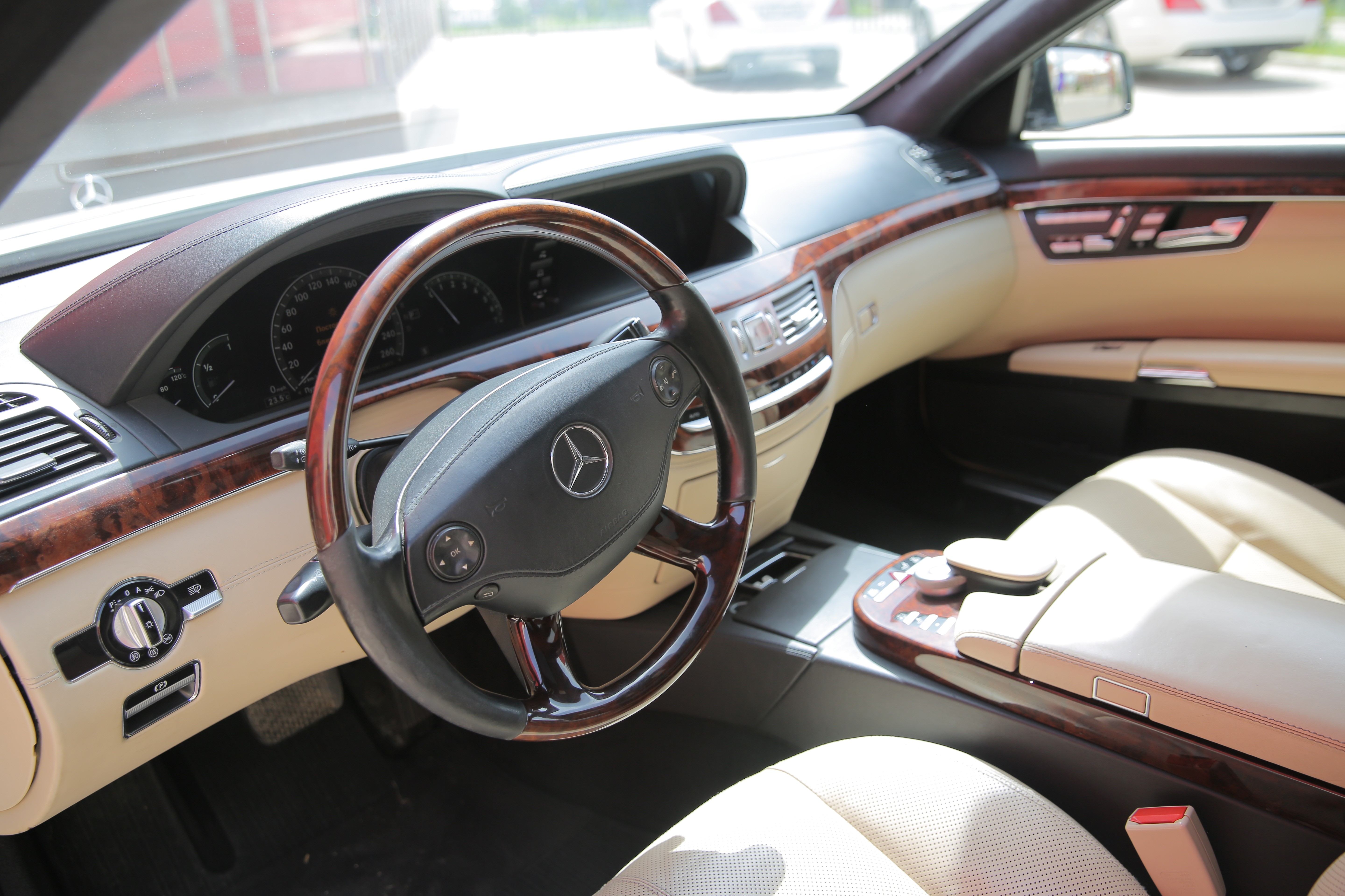 Прокат автомобиля представительского класса Mercedes S 500 белого цвета с водителем в Онеге
